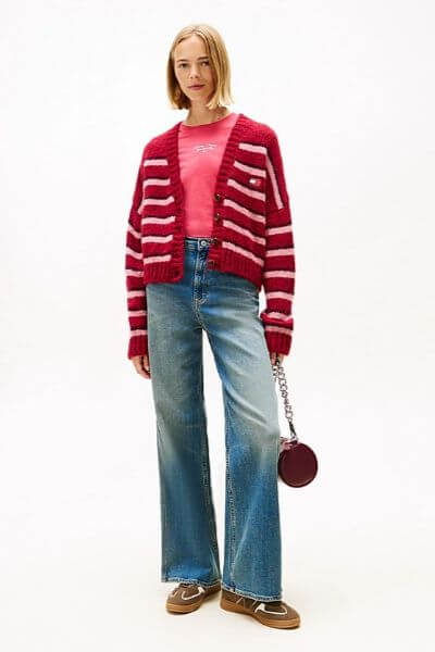 Tommy Hilfiger Relaxed Stripe Cardigan Ruby Rhubarb